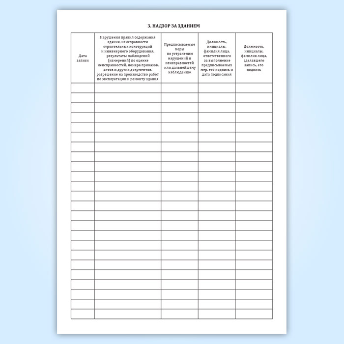 Технический журнал по эксплуатации здания следует составлять в одном экземпляре.