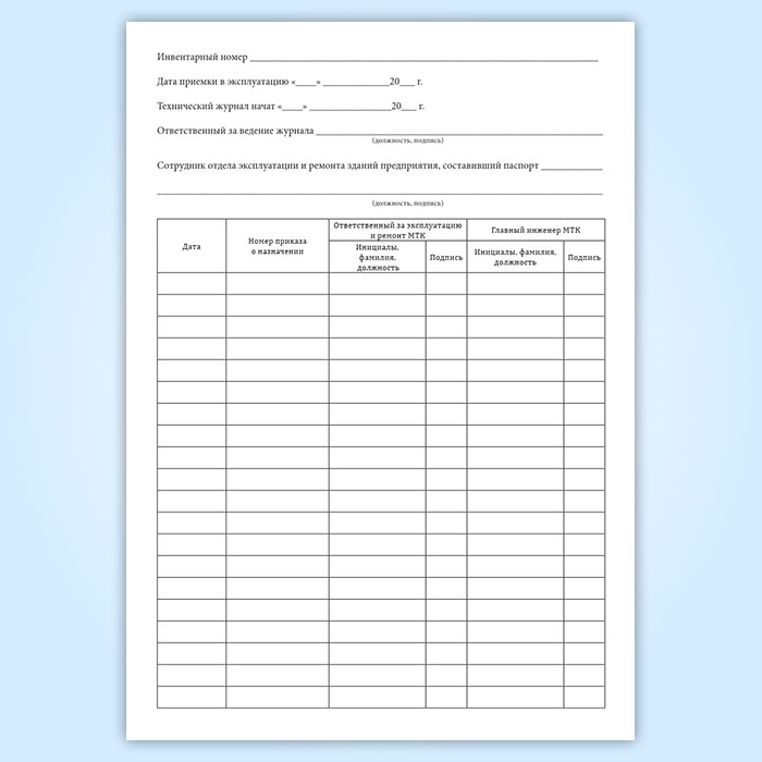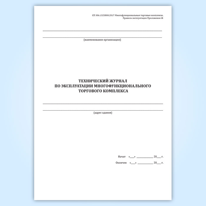 Форма технического журнала по эксплуатации многофункционального торгового комплекса соответствует Приложению Ж к СП 306.1325800.2017 Многофункциональные торговые комплексы. Правила эксплуатации