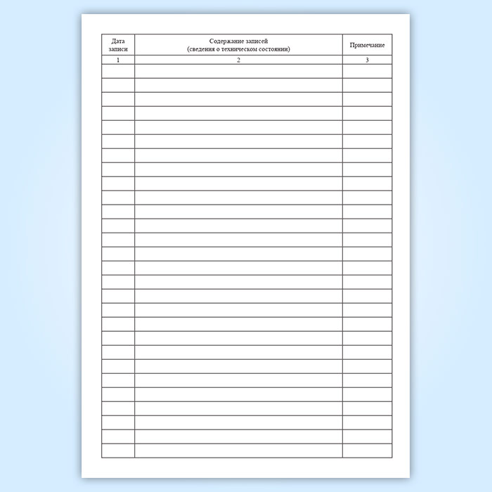 Сведения, помещенные в техническом журнале, отражают техническое состояние здания (или сооружения) на данный период времени, а также историю его эксплуатации.