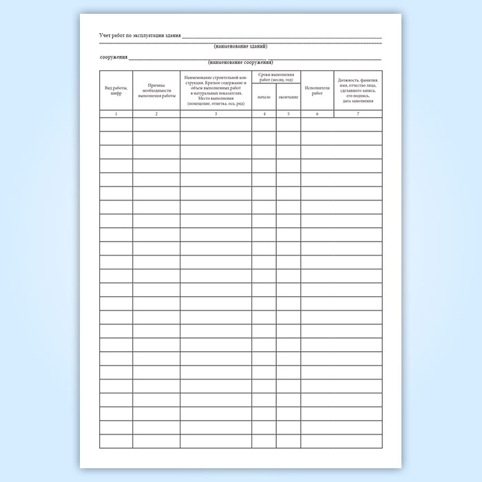 Форма журнала по техническому обслуживанию зданий и сооружений ТЭС соответствует Приложению М к "Здания и сооружения ТЭС. Организация эксплуатации и технического обслуживания. Нормы и требования. СТО 17330282.27.100.003-2008".