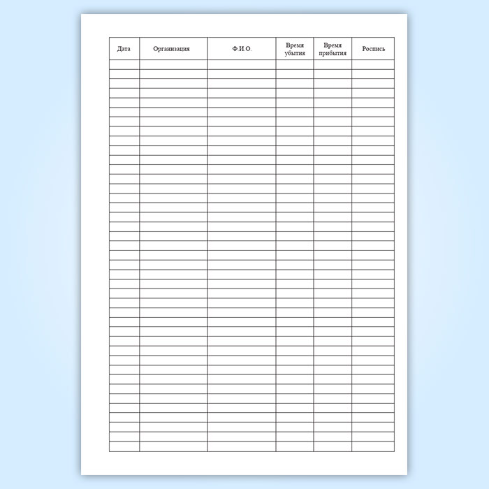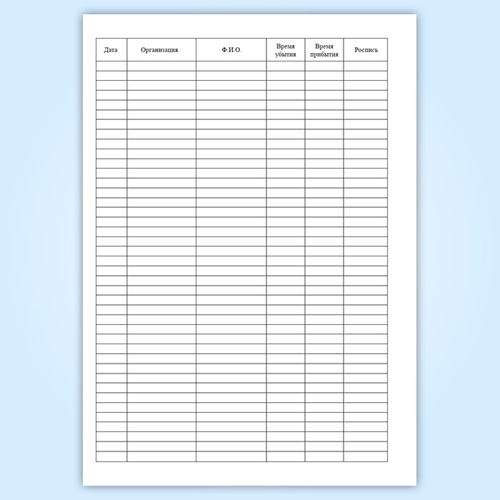 Тетрадь разъездов сотрудников в сторонние организации содержит графы: