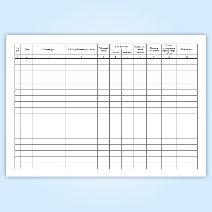Журнал учета времени работы в тяжелых, вредных или опасных условиях