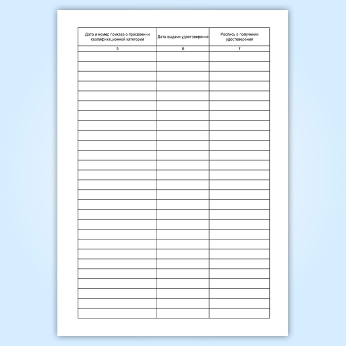 Удостоверения о полученной квалификационной категории работника регистрируются в отдельном журнале регистрации выдачи работникам удостоверений, куда вносятся следующие сведения: номер и дата приказа, личная подпись аттестуемого.