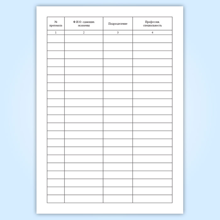 Журнал регистрации протоколов обучения и удостоверений имеет графы:
