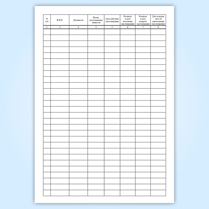 На крупных предприятиях с пропускной системой, где ведется контроль доступа к объектам, необходим учет удостоверений личности. Все выданные удостоверения регистрируются в журнале.
