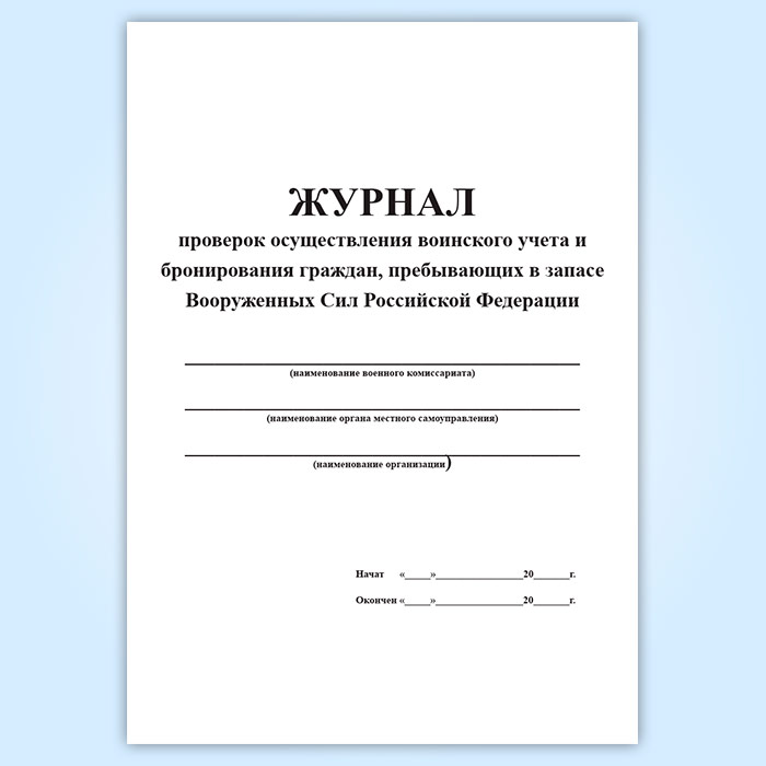 Журнал проверок осуществления воинского учета и бронирования граждан, пребывающих в запасе Вооруженных Сил Российской Федерации