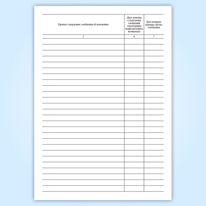 Журнал учета листков сообщений и корешков к ним применяется для внесения сведений о передаче в военные комиссариаты сведений об изменении учетных данных, содержащихся в личных карточках граждан, состоящих на воинском учете.
