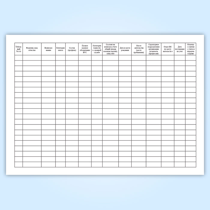 Журнал учета личных карточек (форма Т-2) граждан, пребывающих в запасе применяется для ведения воинского учета на предприятии. Личные карточки принятых на работу граждан, поставленных на воинский учет, указываются в соответствующие разделы журнала.
