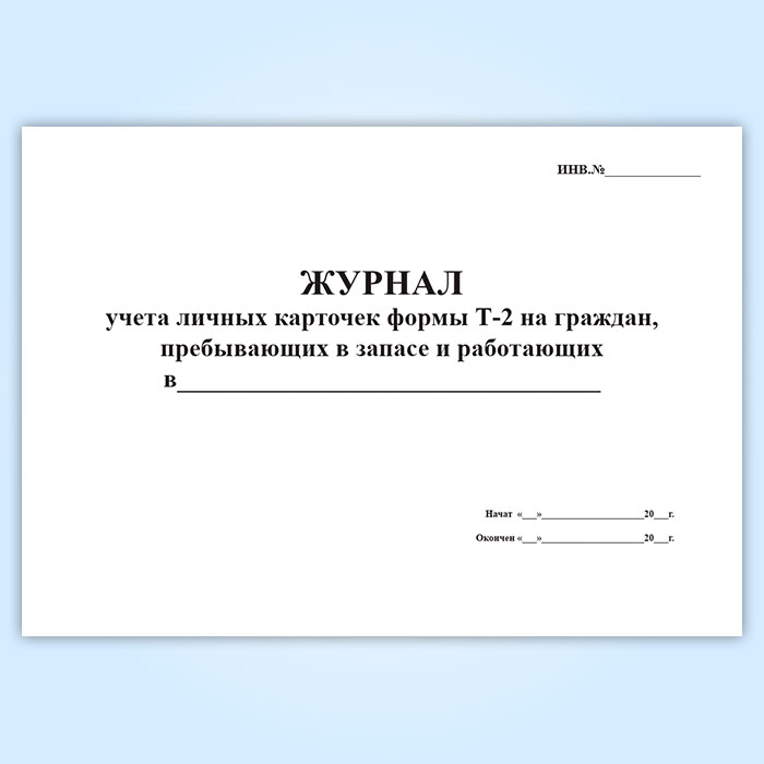 Журнал учета личных карточек формы Т-2 на граждан, пребывающих в запасе и работающих