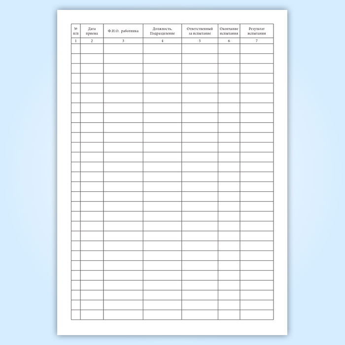 Журнал учета работников на испытательном сроке предназначен для контроля прохождения новыми сотрудниками организации испытательного срока.