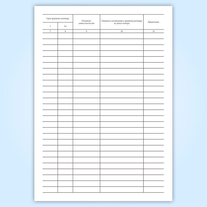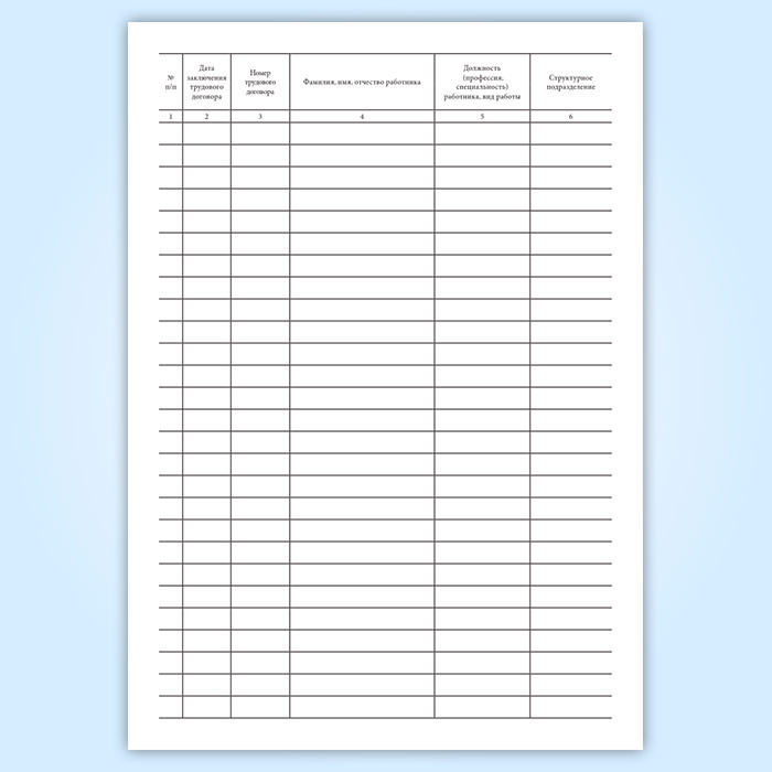 Графы журнала регистрации трудовых договоров: