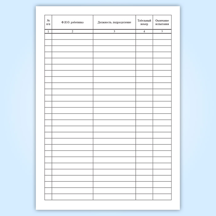 Графы журнала учета прохождения испытания:
