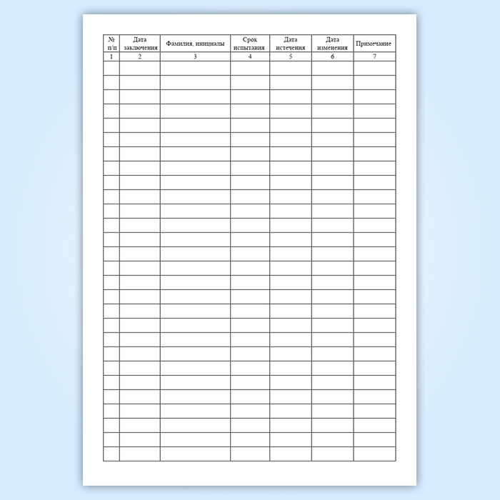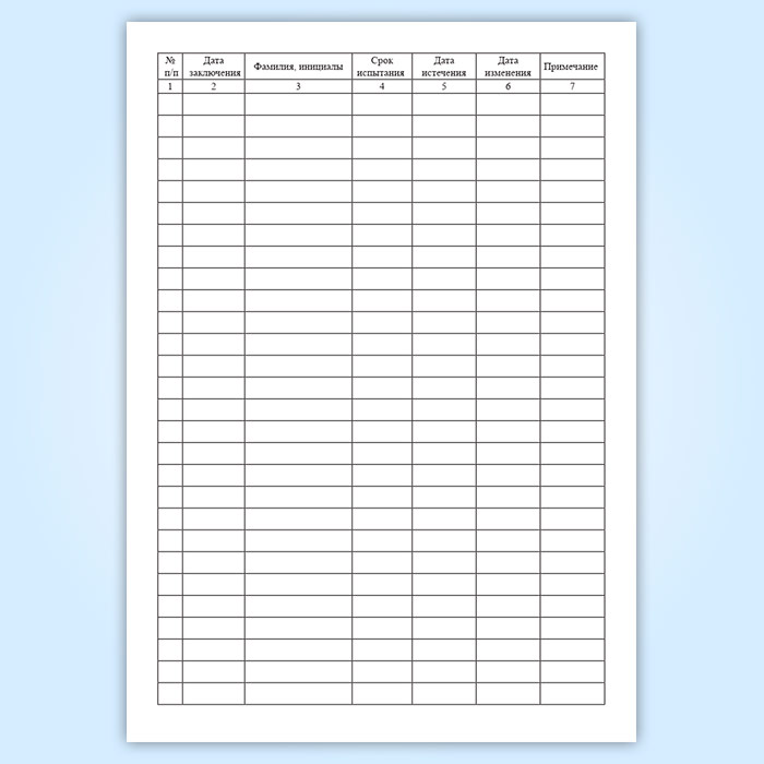 Графы журнала учета трудовых договоров: