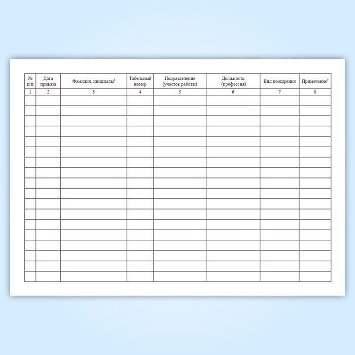 Журнал учета приказов (распоряжений) о поощрениях имеет графы: