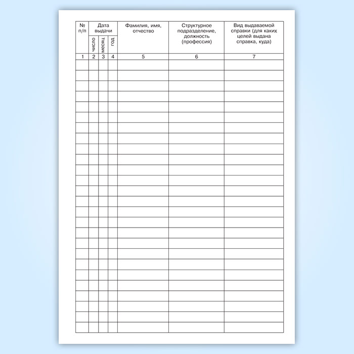 Графы журнала выдачи справок о заработной плате, стаже, месте работы: