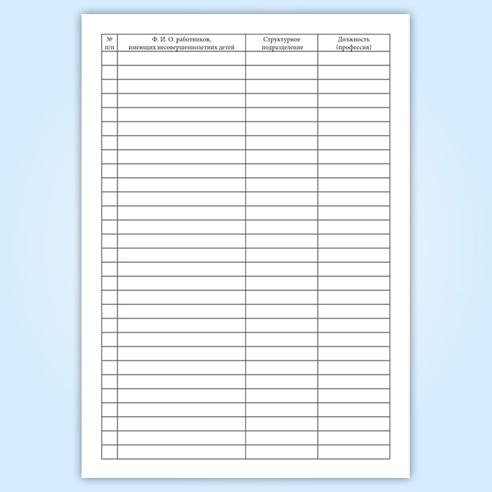 Журнал учета работников, имеющих несовершеннолетних детей