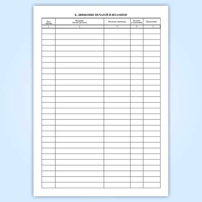 В соответствии с Методическими рекомендациями по организации делопроизводства используемые предприятием (в том числе в кадровой работе) печати и штампы подлежат учету.