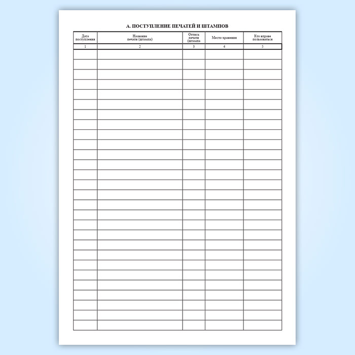 При этом целесообразно учитывать раздельно поступление и движение печатей (штампов).
