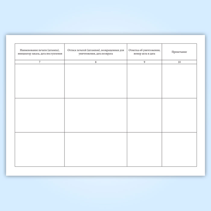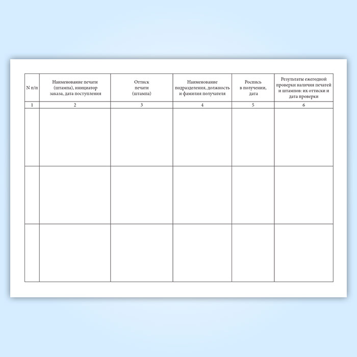 См. также Книгу учета печатей и штампов, графы которой отличаются.