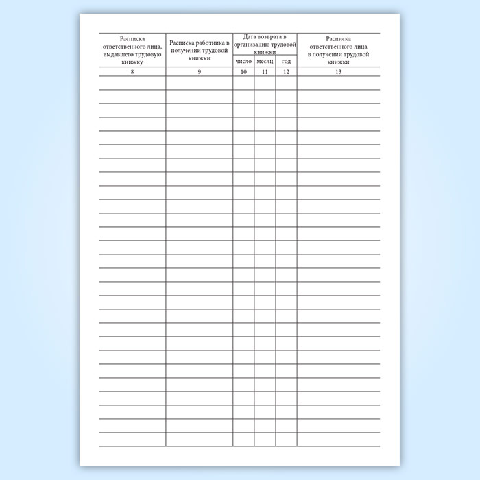 8. Расписка ответственного лица, выдавшего трудовую книжку