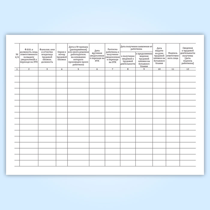 Журнал перехода на электронные трудовые книжки имеет графы: