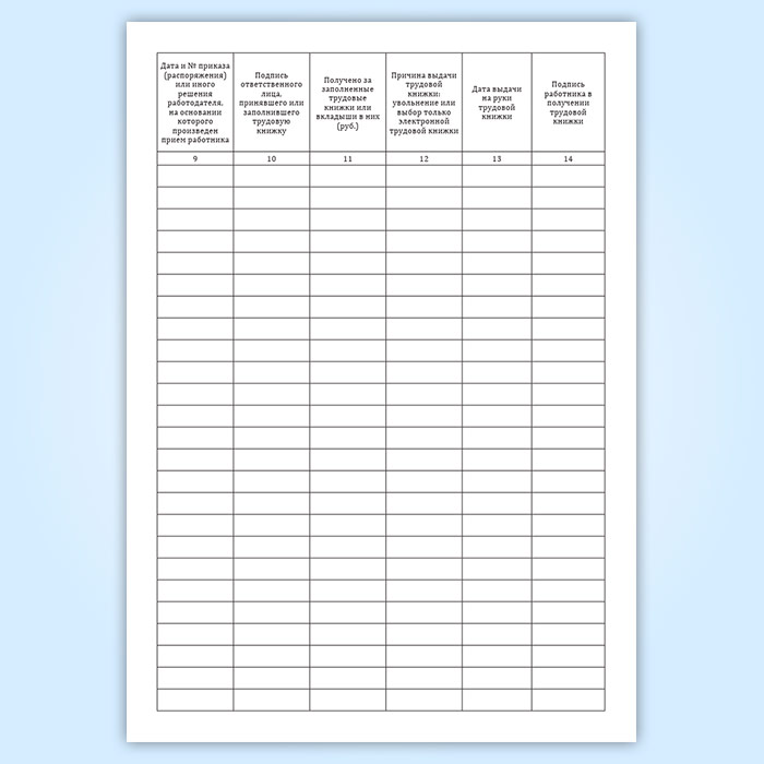 14. Подпись работника в получении трудовой книжки
