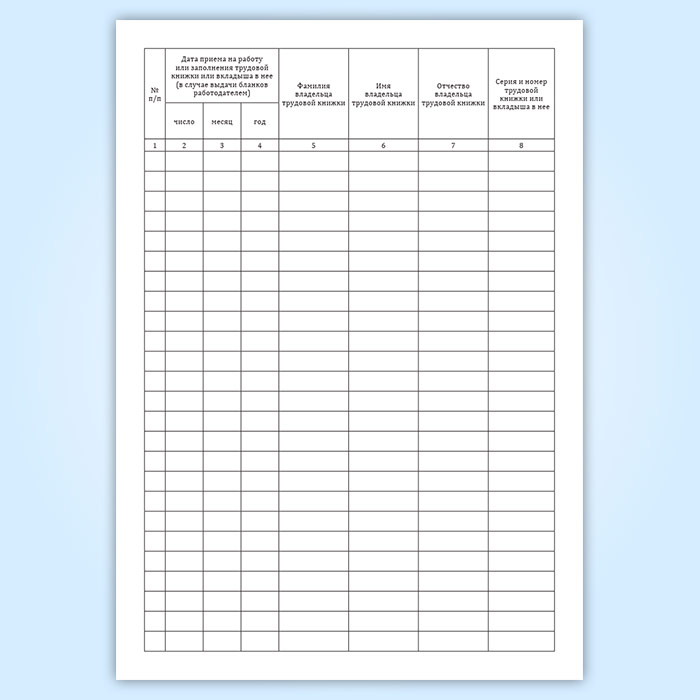 Работодатель самостоятельно разрабатывает книги (журналы) по учету бланков трудовой книжки и вкладыша в нее и учета движения трудовых книжек.