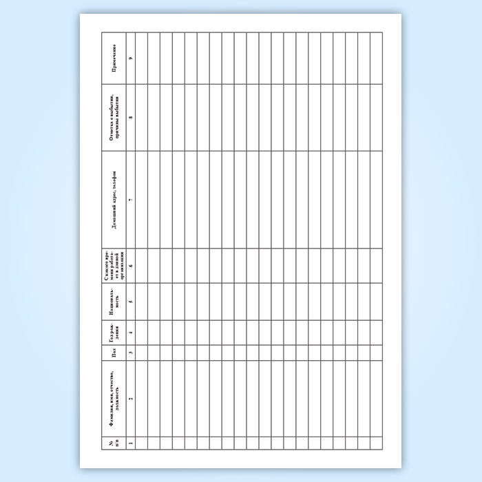 Журнал учета иностранных работников имеет графы: