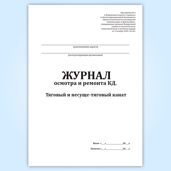 Журнал осмотра и ремонта канатной дороги. Тяговый и несуще-тяговый канат (форма № 2)
