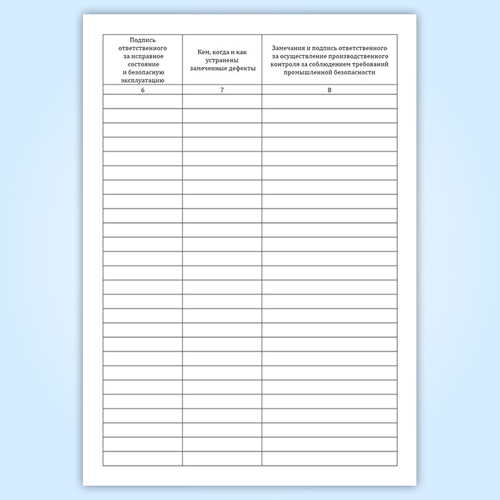 6. Подпись ответственного за исправное состояние и безопасную эксплуатацию