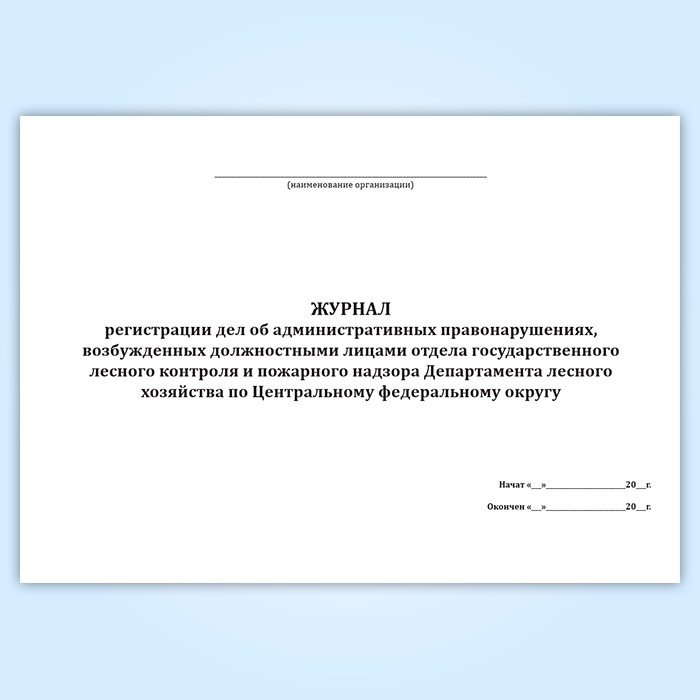 По фактам нарушения лесного законодательства, дела об административных правонарушениях, возбужденных должностными лицами отдела государственного лесного контроля и пожарного надзора Департамента лесного хозяйства по Центральному федеральному округу, регистрируются в журнале.