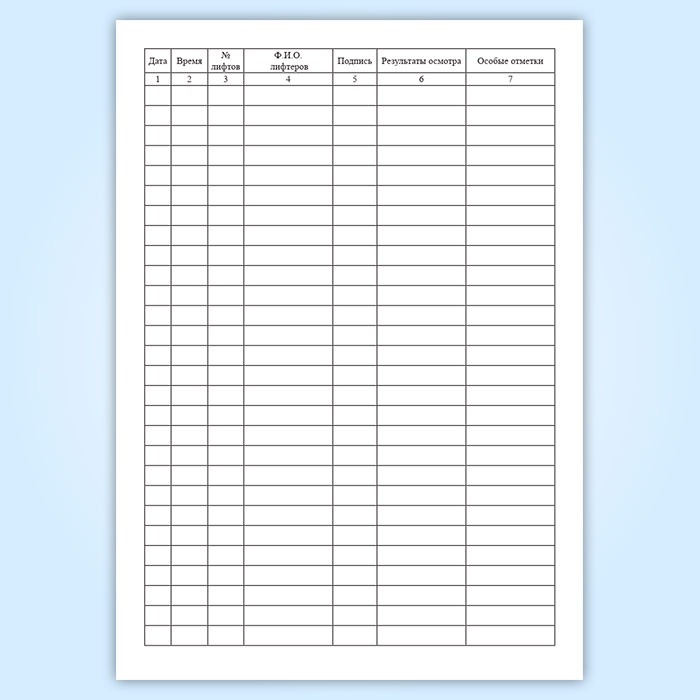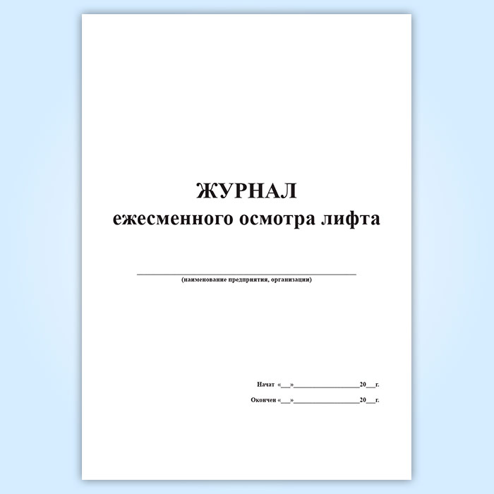 - Журнал ежесменного осмотра лифта.
