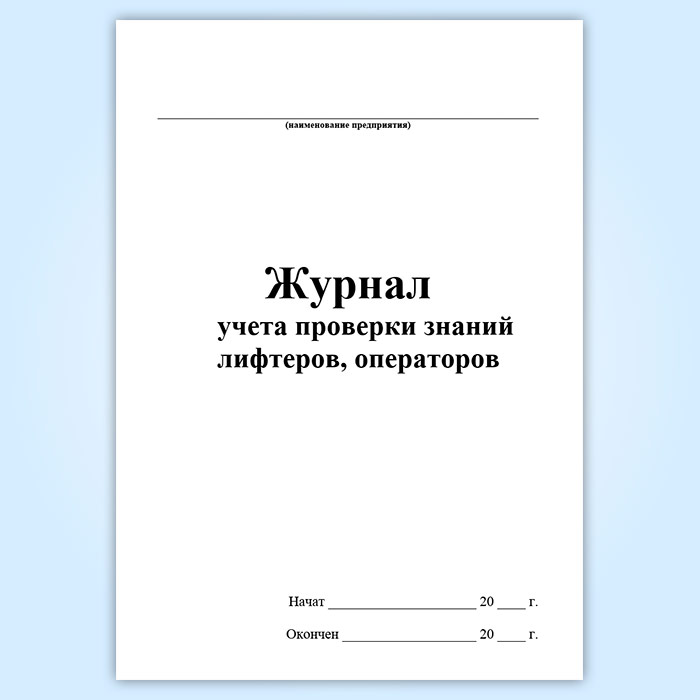 Для учета проверки знаний лифтеров, операторов и персонала, обслуживающего лифты, используют журнал.