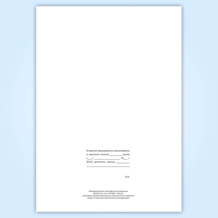 Вы получаете печатную продукцию прошнурованной и c местом для вашей печати в соответствии с действующими нормативными документами: