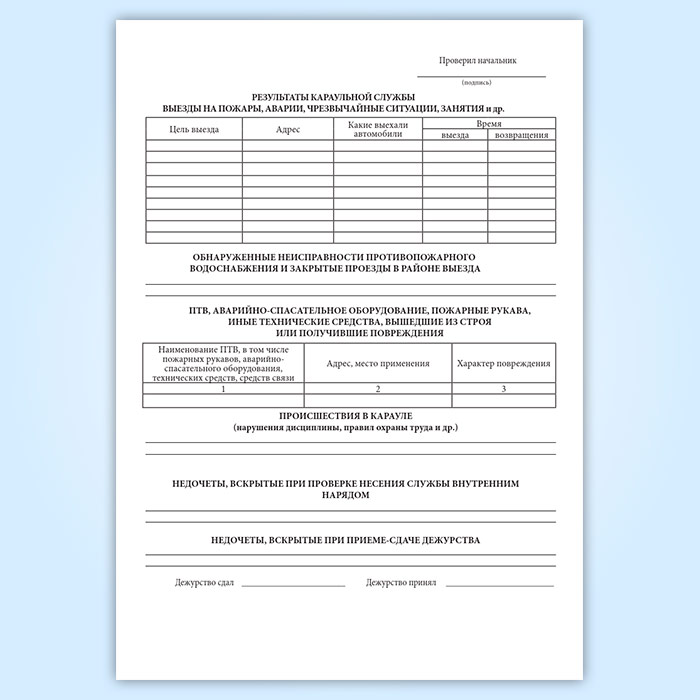 Результаты караульной службы выезды на пожары, аварии, чрезвычайные ситуации, занятия и др. Графы: