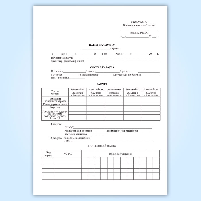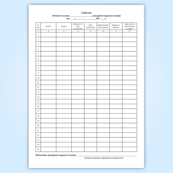 Список личного состава дежурного караула (смены). Графы: