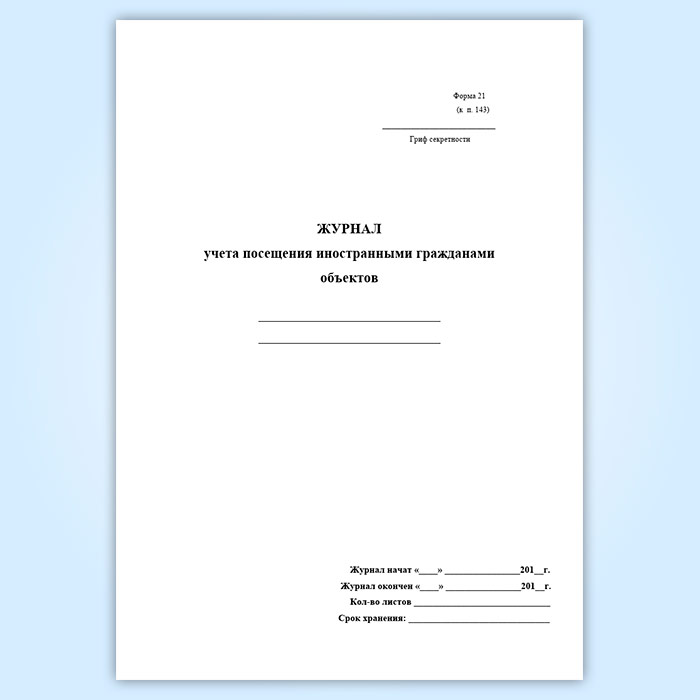 Журнал учета посещения иностранными гражданами объектов (форма 21)