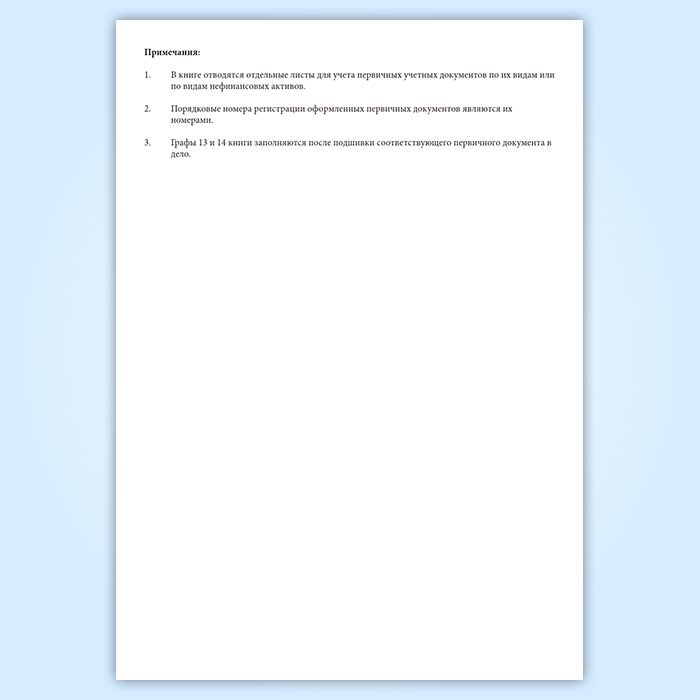 3. Графы 13 и 14 книги заполняются после подшивки соответствующего первичного документа в дело.