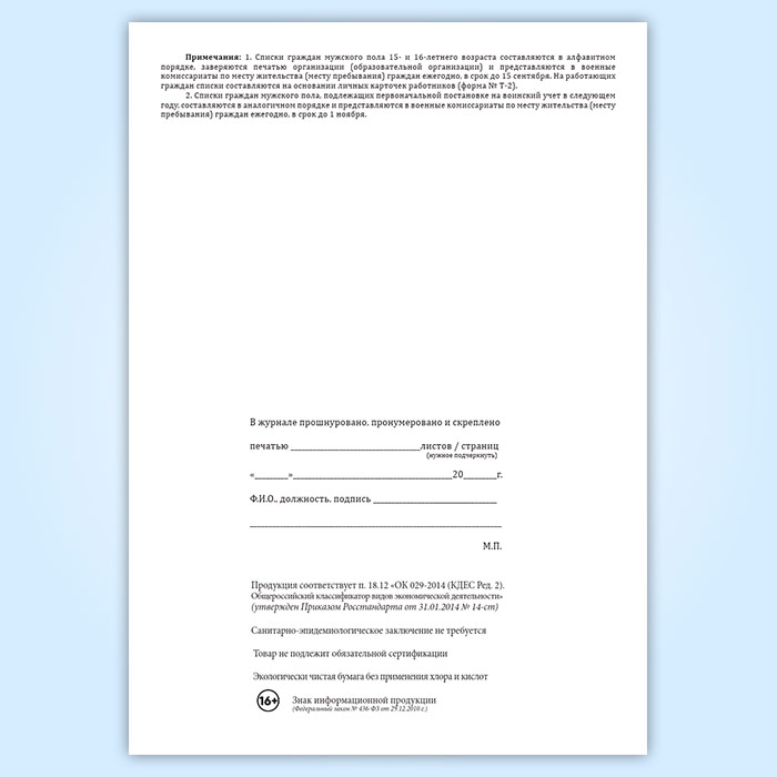 Вы получаете печатную продукцию прошнурованной и c местом для вашей печати в соответствии с действующими нормативными документами: