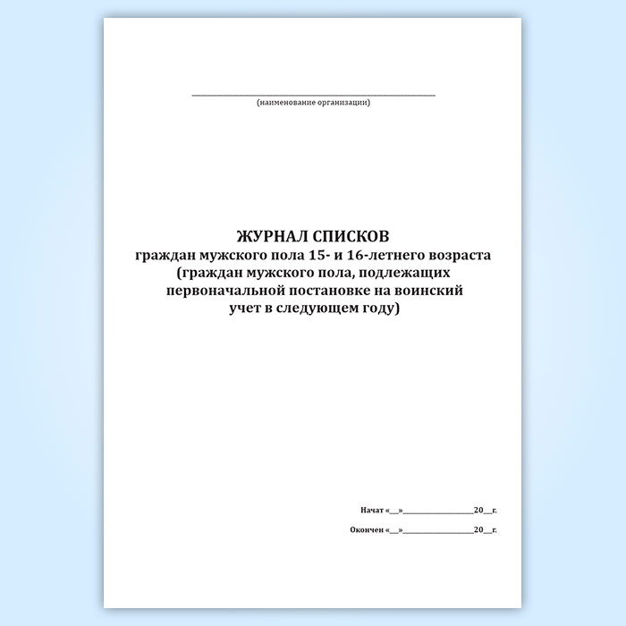 Журнал списков граждан мужского пола 15- и 16-летнего возраста (граждан мужского пола, подлежащих первоначальной постановке на воинский учет в следующем году)