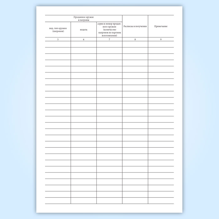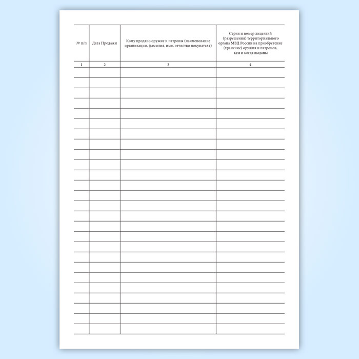 Книга учета продаж оружия и патронов имеет графы: