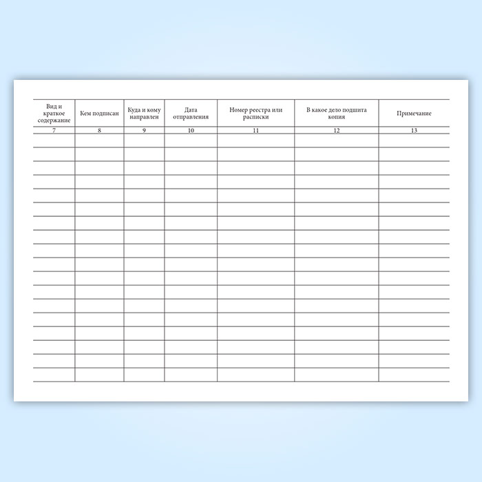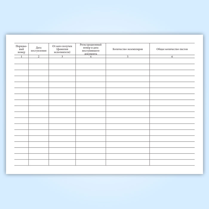 Форма журнала учета документов, полученных на подпись и для рассылки адресатам соответствует Приложению №54 к Инструкции по делопроизводству в органах внутренних дел Российской Федерации