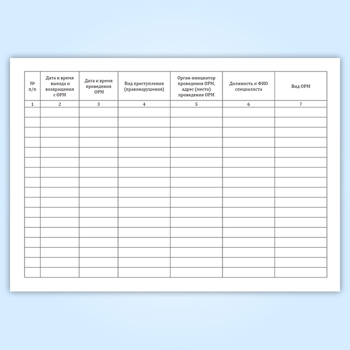 Графы журнала регистрации участия сотрудников ЭКП в оперативно-розыскных мероприятиях: