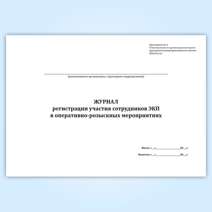 Форма журнала соответствует Приложению 4 к Наставлению по организации экспертно-криминалистической деятельности в системе МВД России.