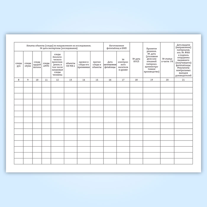 Форма журнала соответствует Приложению № 2 к Наставлению по организации экспертно-криминалистической деятельности в системе МВД России.