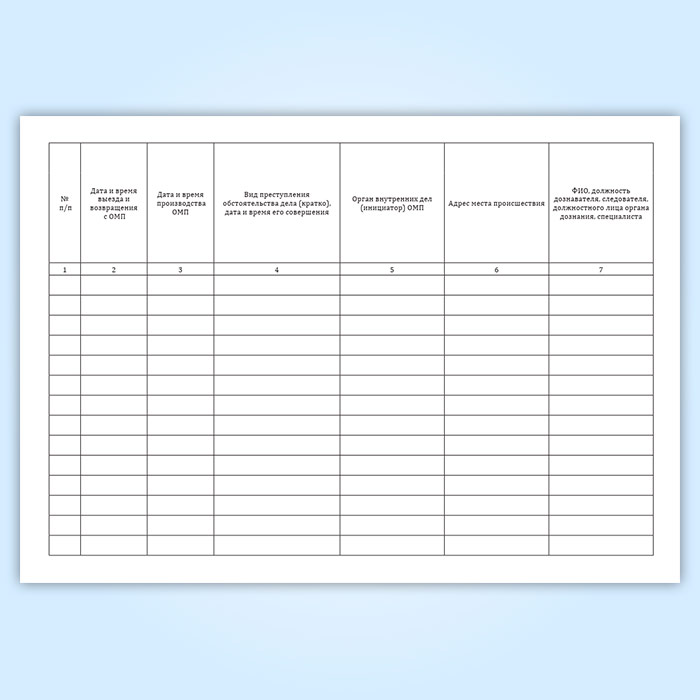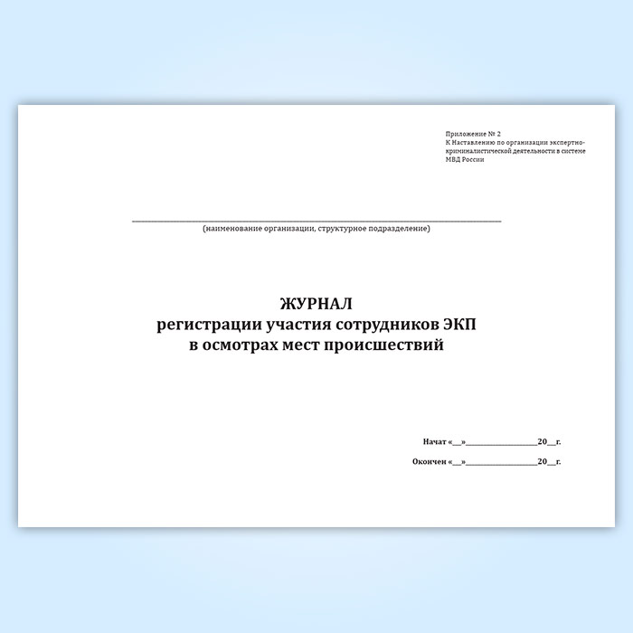 Для регистрации участия сотрудников ЭКП в осмотрах мест происшествий ведется журнал, в котором указывают вид преступления обстоятельства дела (кратко), дату и время его совершения.