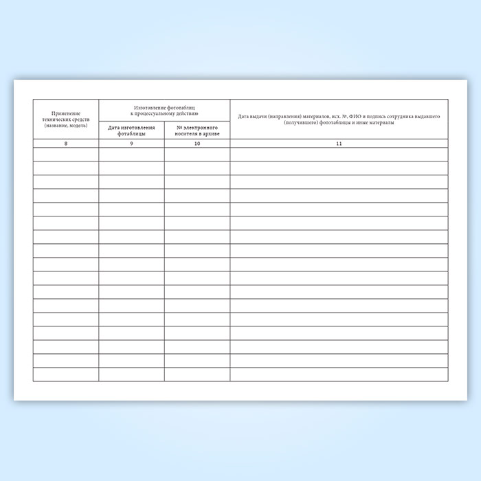 Форма журнала соответствует Приложению 3 к Наставлению по организации экспертно-криминалистической деятельности в системе МВД России.