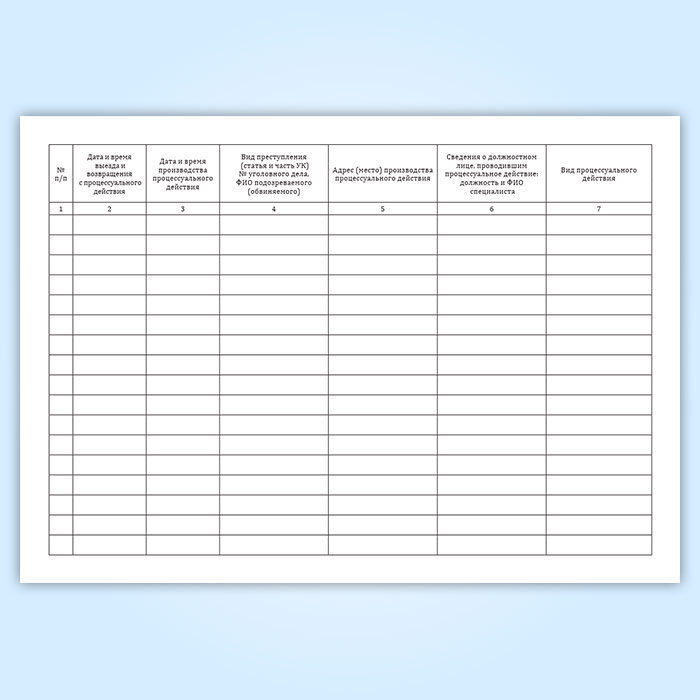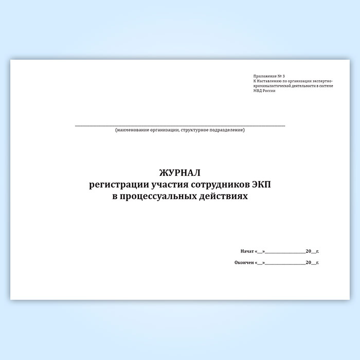 Участие сотрудников ЭКП в процессуальных действиях отмечают в журнале, в котором фиксируют дату и время выезда и возвращения с процессуального действия.