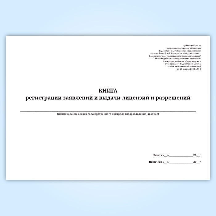 Книга регистрации заявлений и выдачи лицензий и разрешений (Приказ Росгвардии от 14.01.2020 N 8)