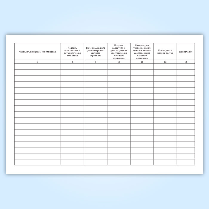 Книга регистрации заявлений и выдачи удостоверений частного охранника имеет графы: